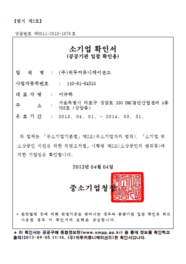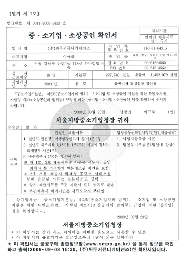 ㆍ 법인설립(박정호 장은숙 공동대표)