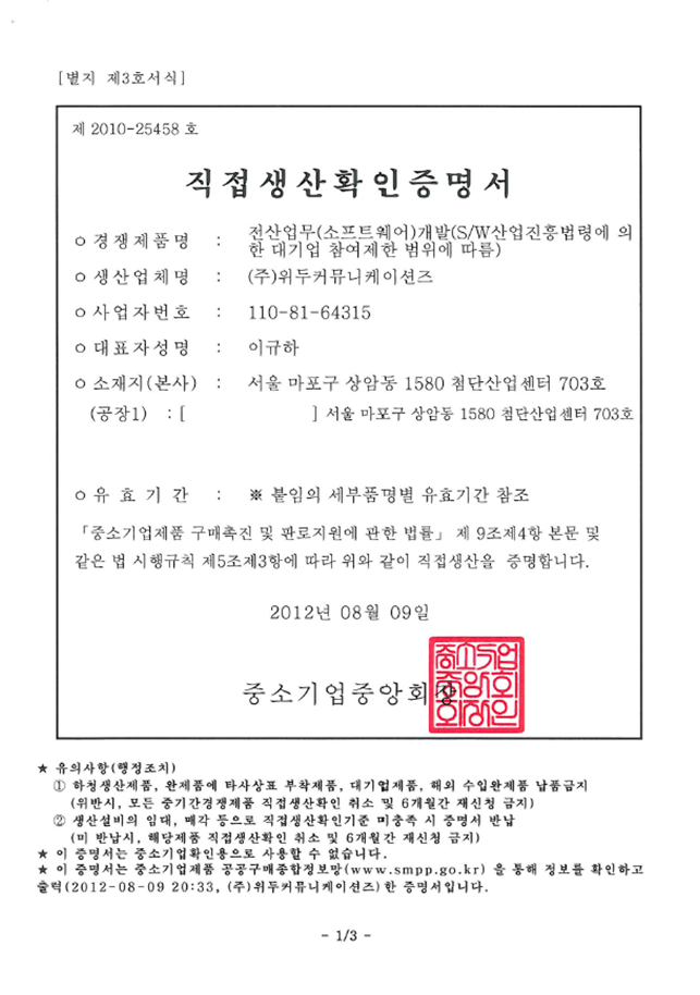 ㆍ 병무청 병역 특례업체 지정